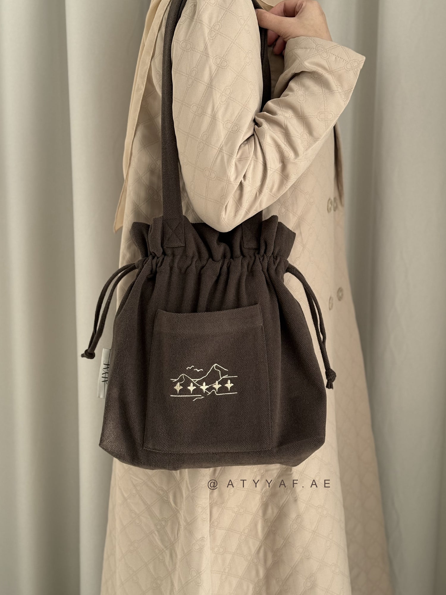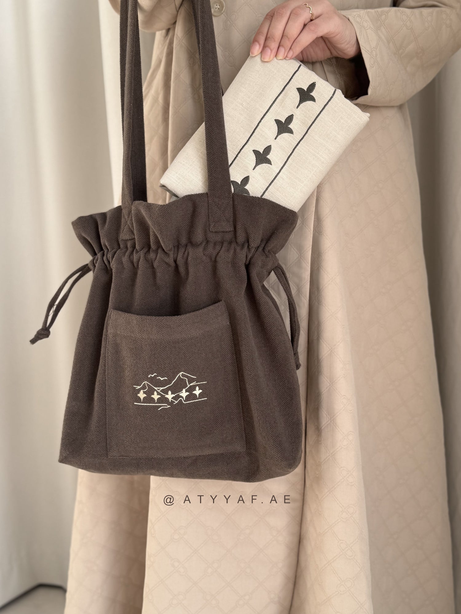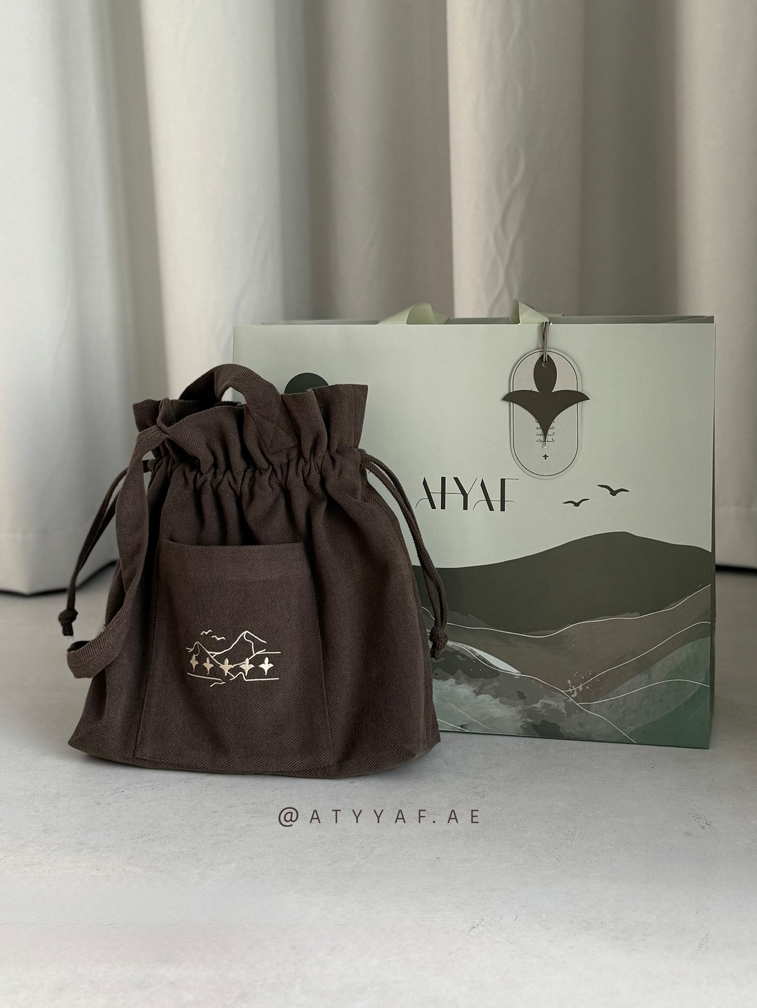 تحوي سجادة صلاة و خفيفة بخامة لنن مطرزة ، في تغليف مميز و راق للإهداء