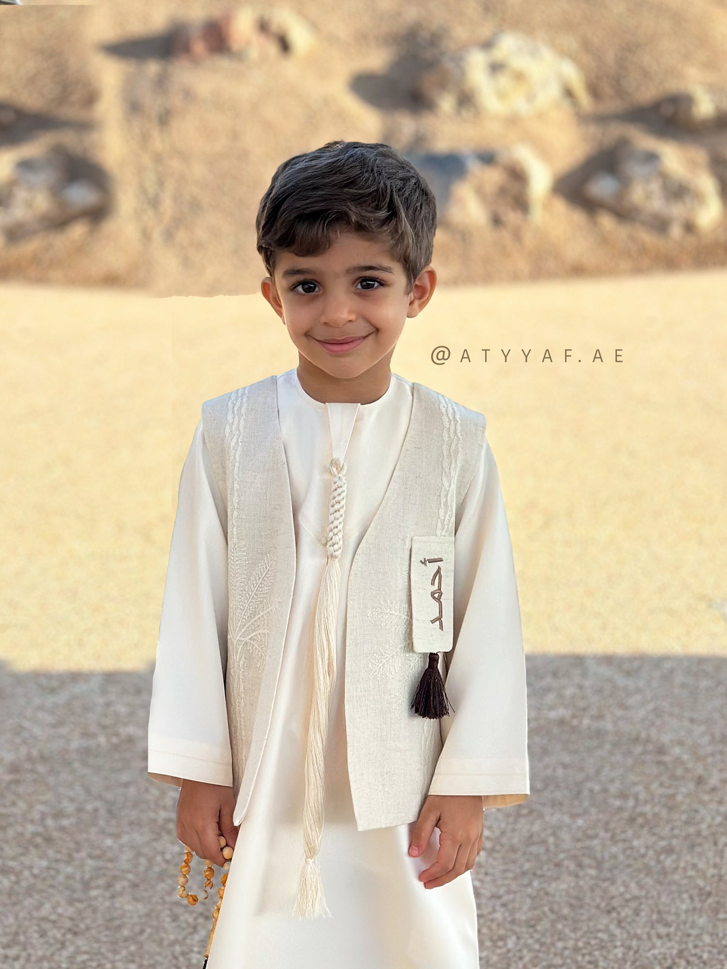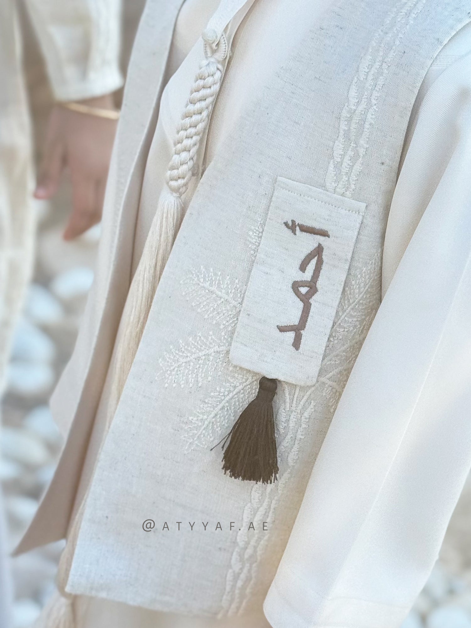 صديري حق الليلة و رمضان بخامة اللنن البيج بتصميم النخل